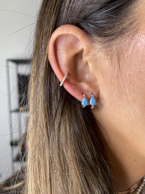 עגילי חישוק עם זרקון טיפה טורקיז