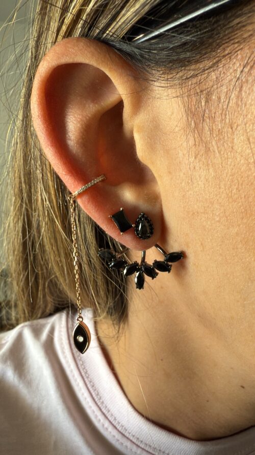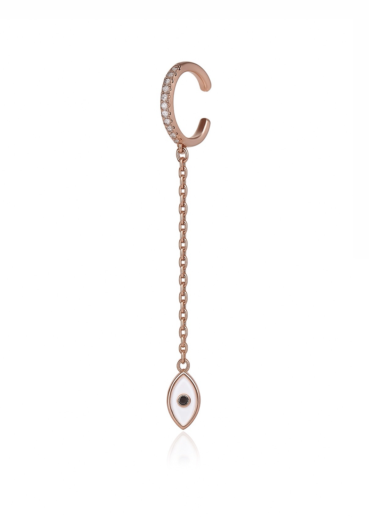 עגיל חישוק הליקס בודד עם עין נופלת, מכסף טהור 925 בציפוי רוז גולד, משובץ זרקונים.