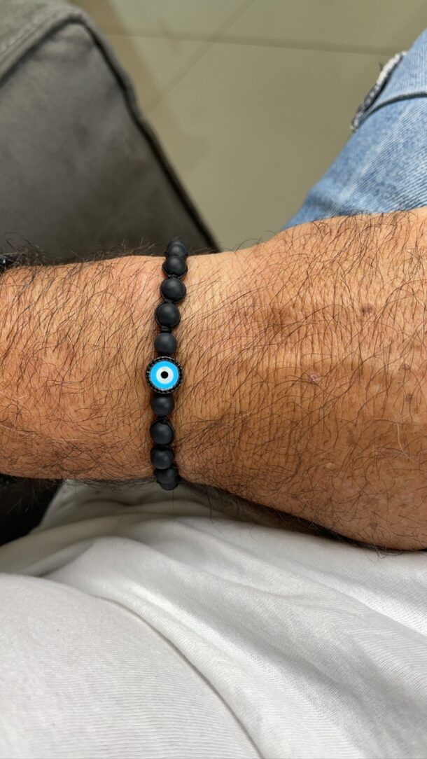 צמיד גבר חרוזים שחורים עם עין עיגול טורקיז משובצת