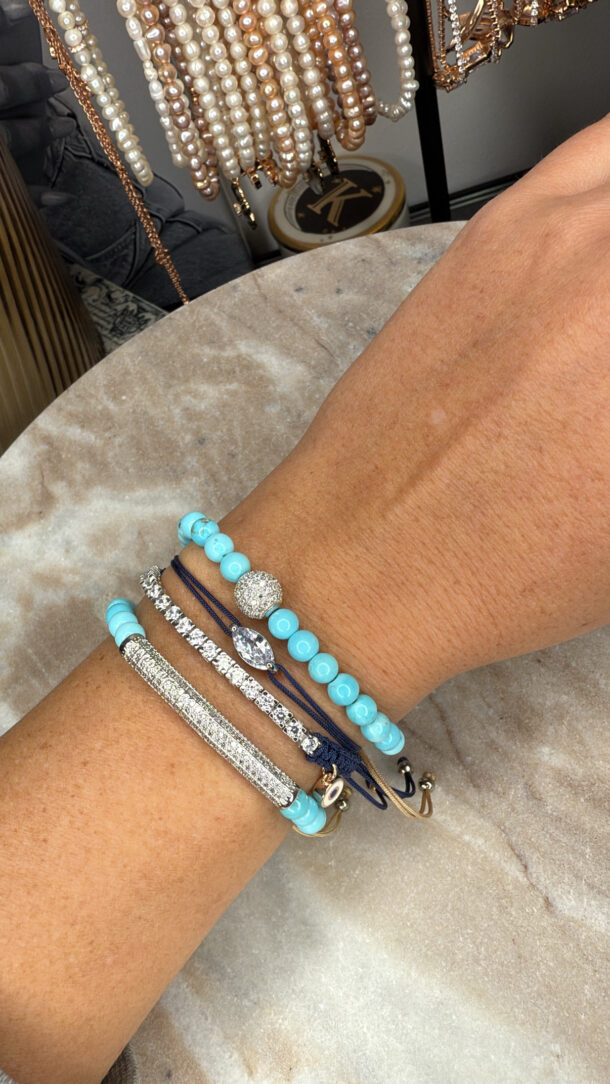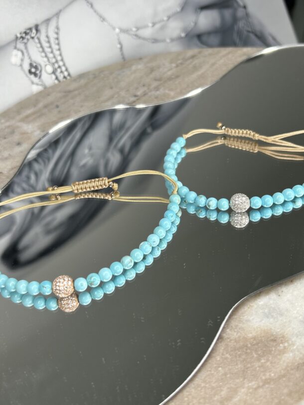 צמיד חרוזים טורקיז עם חרוז משובץ מכסף טהור 925, משובץ זרקונים.