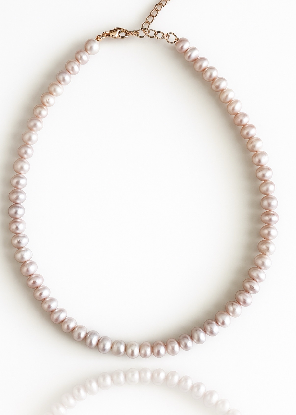 שרשרת פנינים מתורבתות בצבע סגלגל.